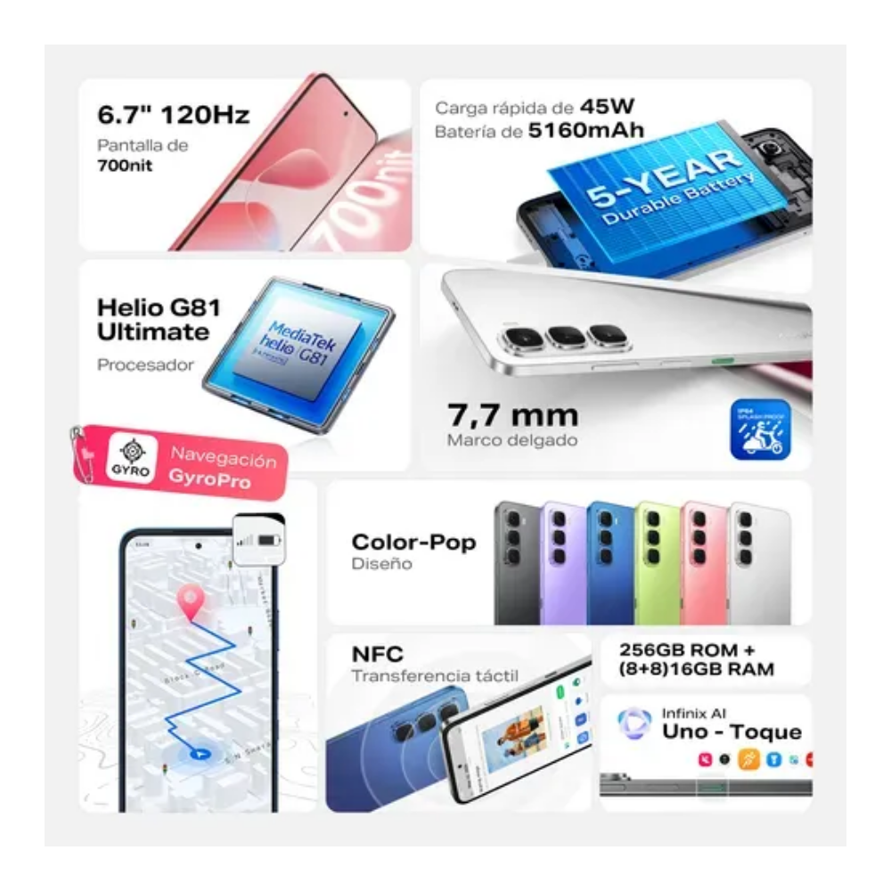 El Infinix Hot 60i destaca en su categoría por ofrecer un almacenamiento interno masivo de 256 GB, eliminando las preocupaciones por el espacio. Su pantalla de 6.7 pulgadas con una tasa de refresco de 120Hz garantiza una navegación ultra suave, ideal para redes sociales y contenido multimedia. Equipado con 8 GB de RAM física (ampliable mediante tecnología virtual), este dispositivo ofrece un rendimiento eficiente para el día a día. Además, cuenta con una batería de 5000 mAh de larga duración y una cámara principal de 13 MP con IA que captura imágenes claras y detalladas, todo bajo un diseño moderno y resistente.