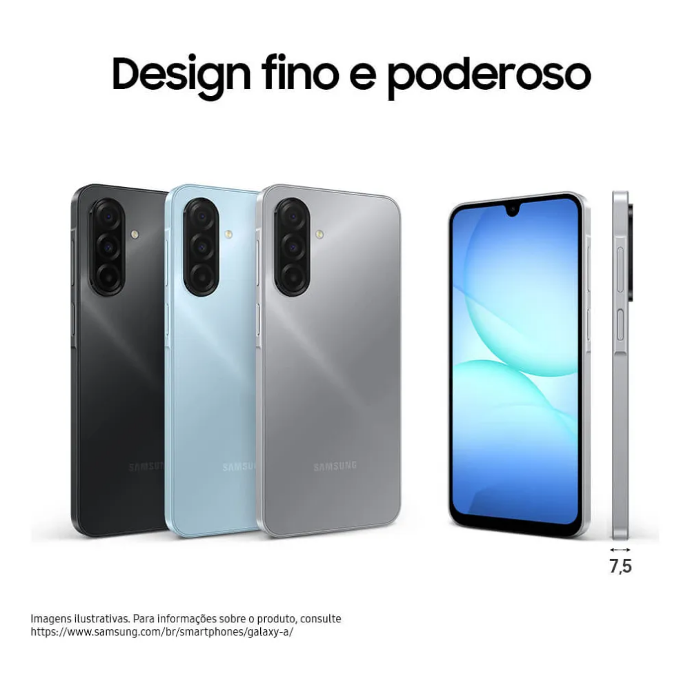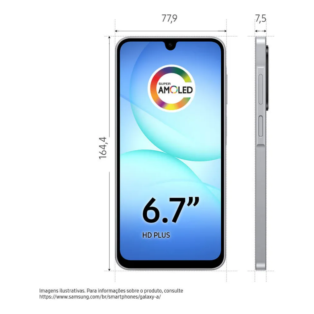 Samsung Galaxy A17 – El poder de la IA en tus manos. Experimenta el futuro con Galaxy AI integrada, pantalla Super AMOLED de 6.7″ a 90Hz y 128 GB de espacio. Cámara de 50 MP, conectividad NFC para pagos sin contacto y resistencia IP54. Inteligencia, estilo y 6 años de actualizaciones garantizadas.